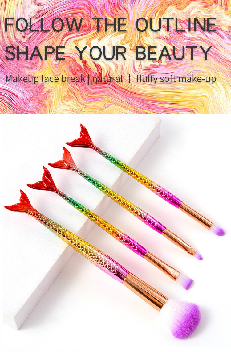 Home > Fishtail handle soft hair super soft color makeup brush four-piece set soft skin-friendly eye shadow brush facial beauty powder