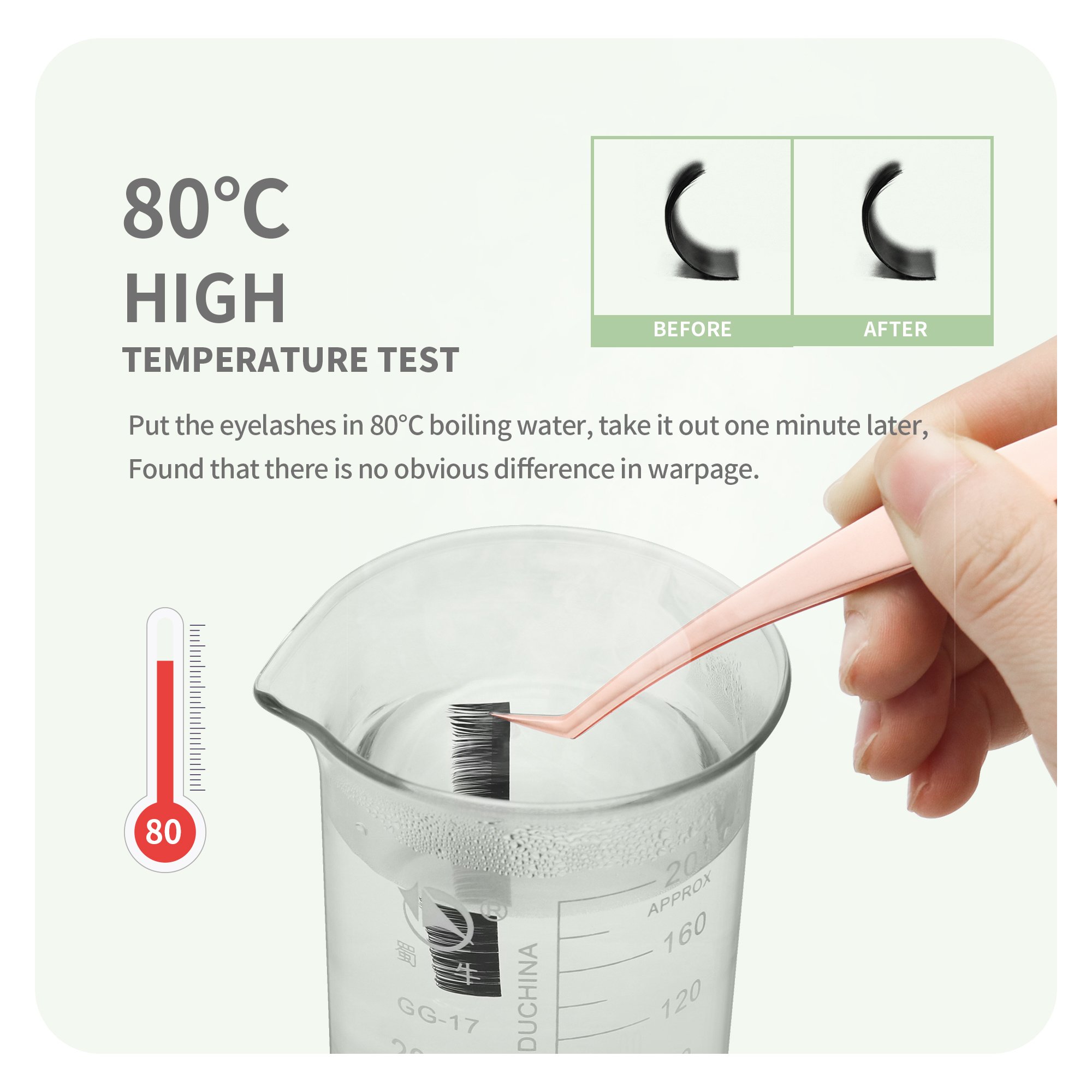 8, Eyelash extensions stick on tape strongly, hard to fall off from the lash tape, easy to pick up and no remaining glue, individual eyelash is distinct.